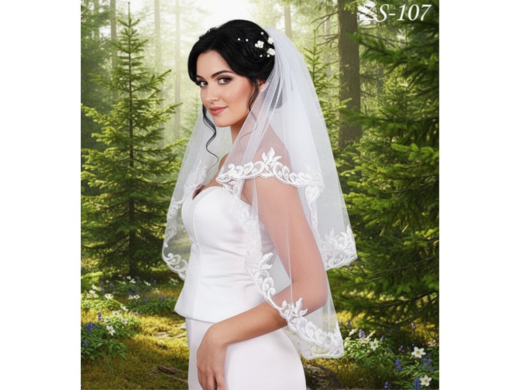 Dvouvrstvý závoj lemovaný krajkou: ZS-107