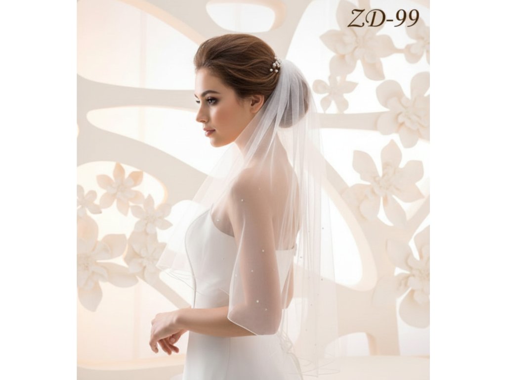 Jednoduchý svatební závoj zdobený AB krystaly ZD-99