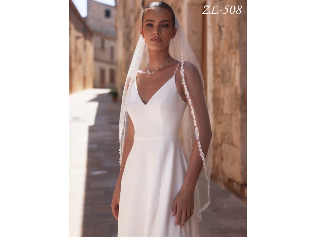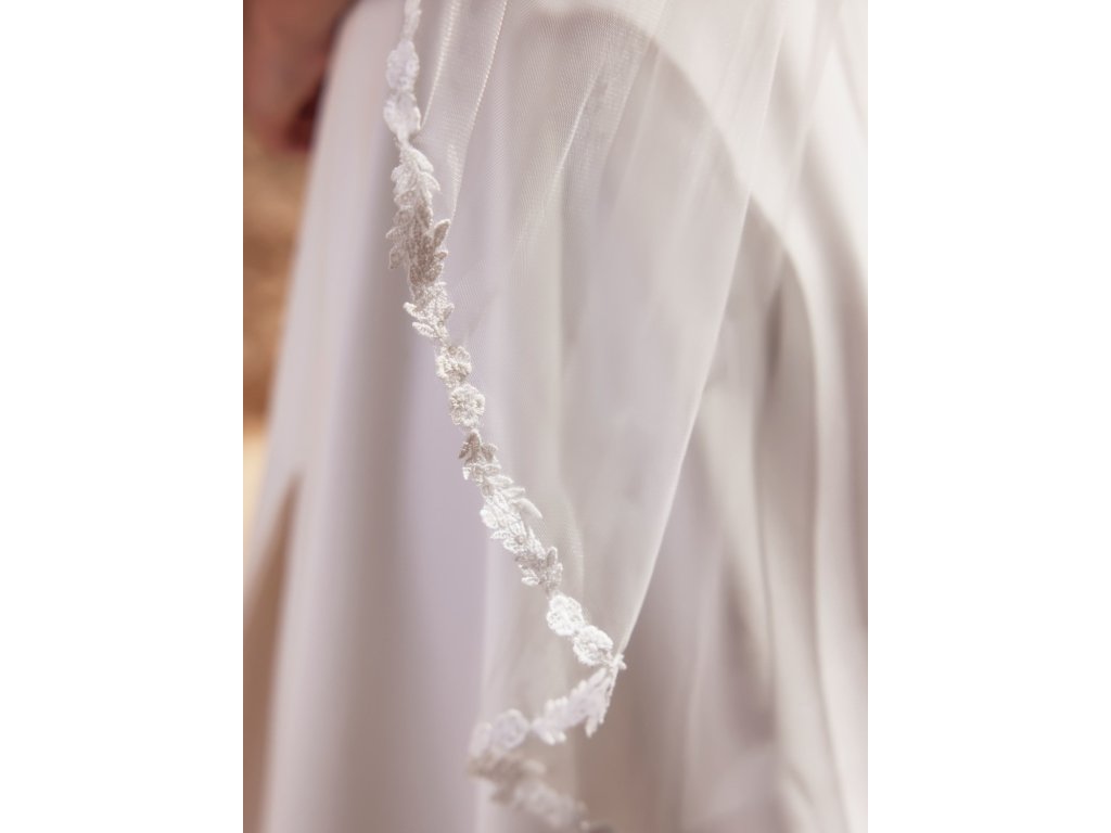 Jemný svatební závoj zdobený úzkou krajkou: ZL-508