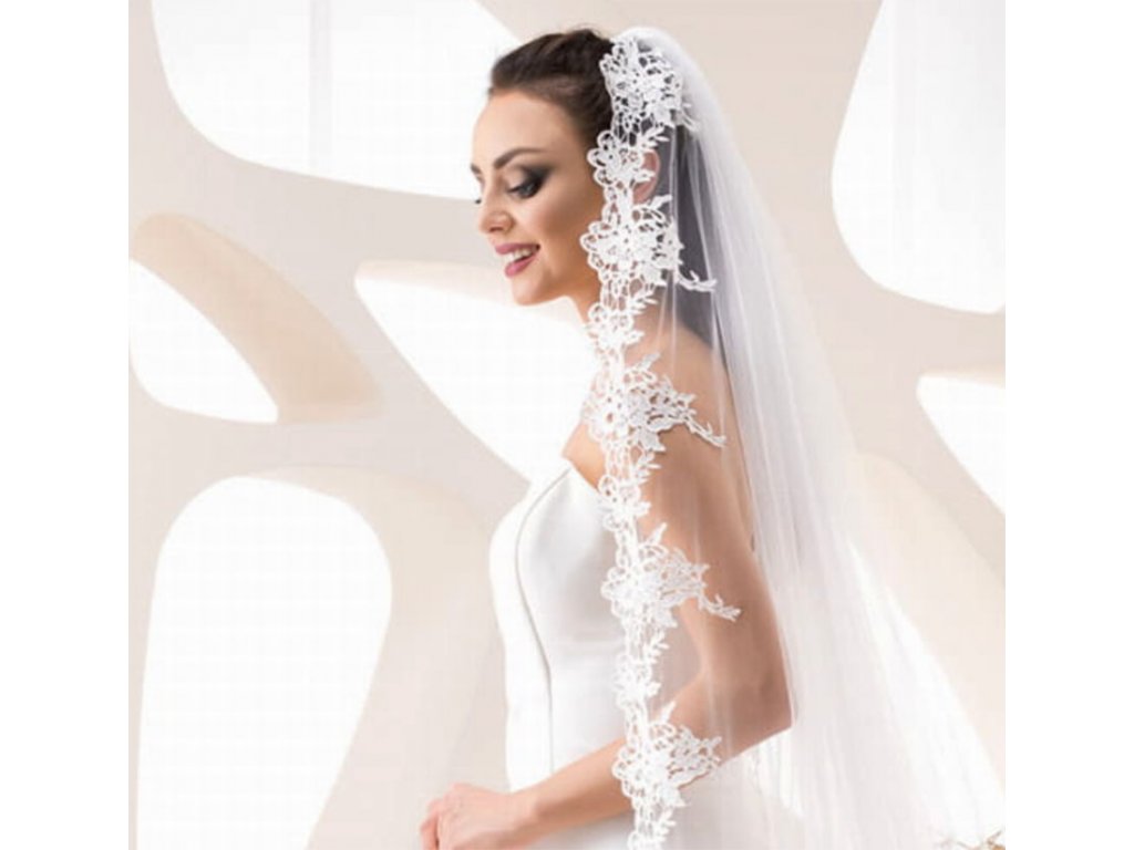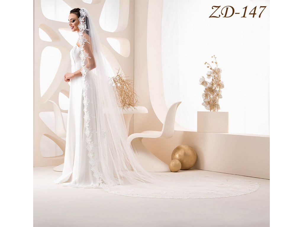 Katedrálový svatební závoj s krajkou Guipure ZD-147