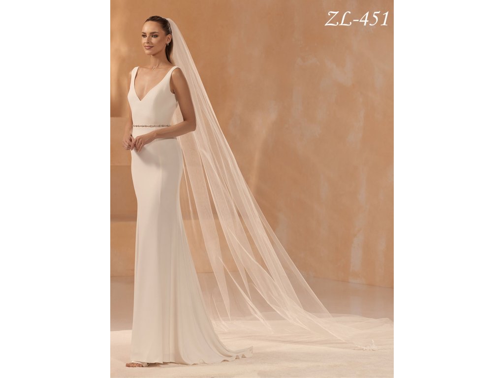 Katedrálový svatební závoj s krajkovým lemováním: ZL-451