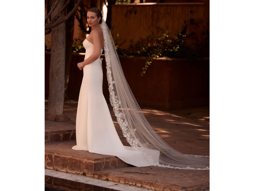 Závoj je vyrobený z extra jemného a měkkého tylu typu "soft pure tulle" s hedvábným efektem.