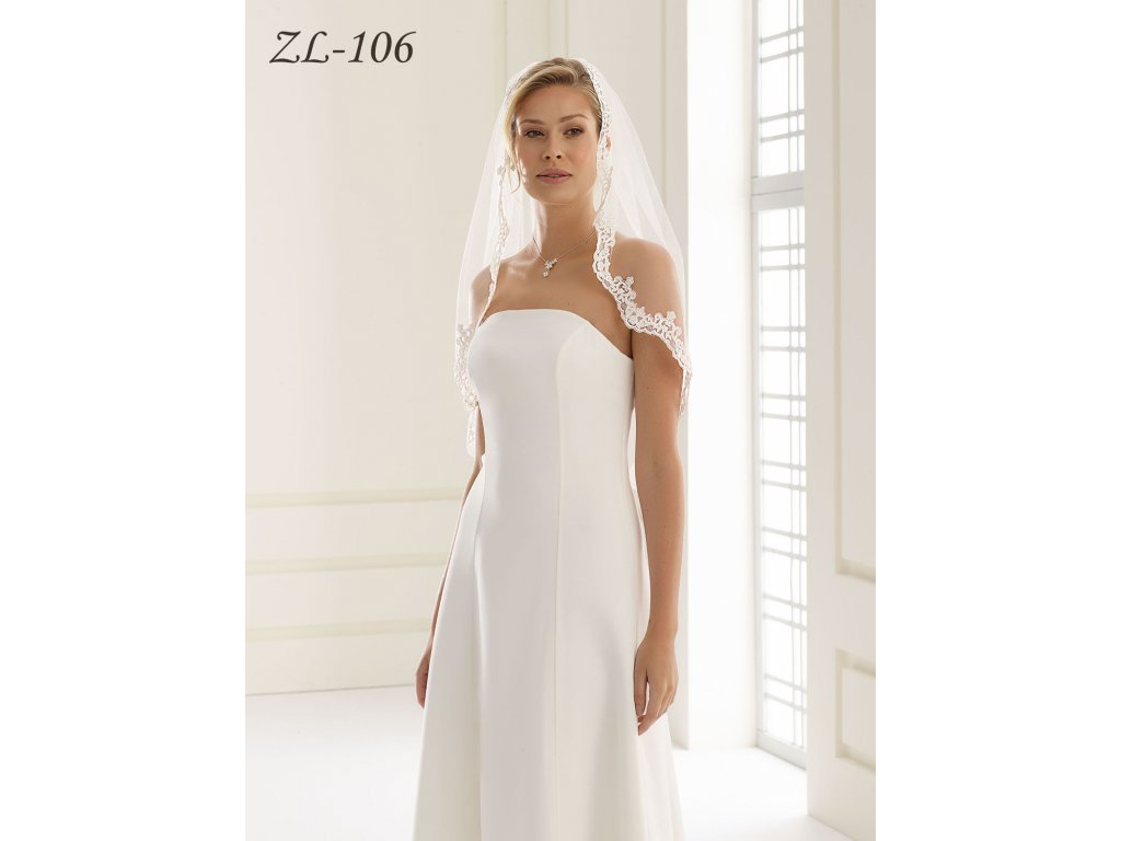 Krajkový svatební závoj zdobený korálky a perličkami: ZL-106