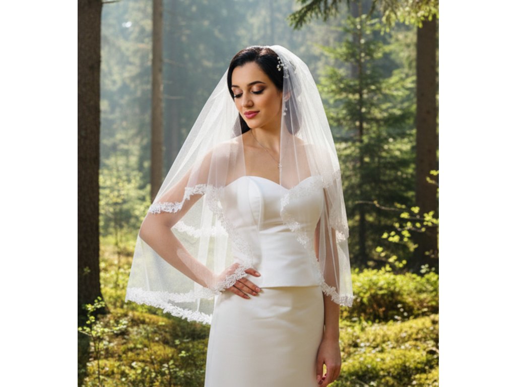 Dvouvrstvý svatební závoj s krajkou.