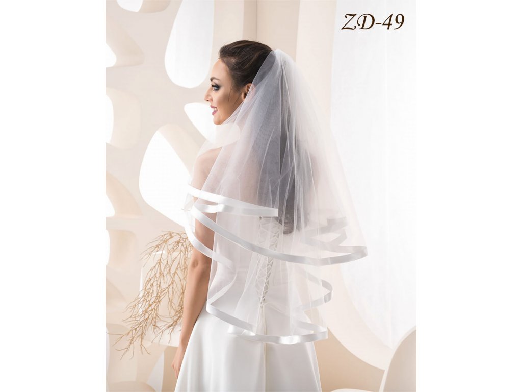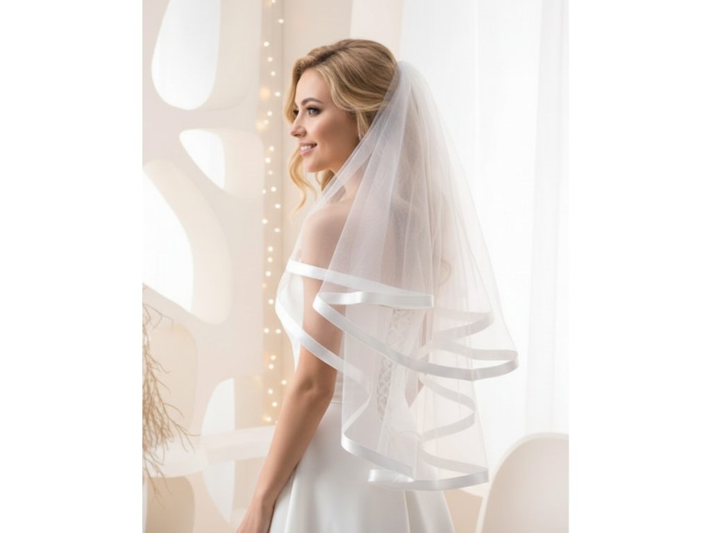 Krátký svatební závoj s širokým saténovým lemem ZD-49 bílý