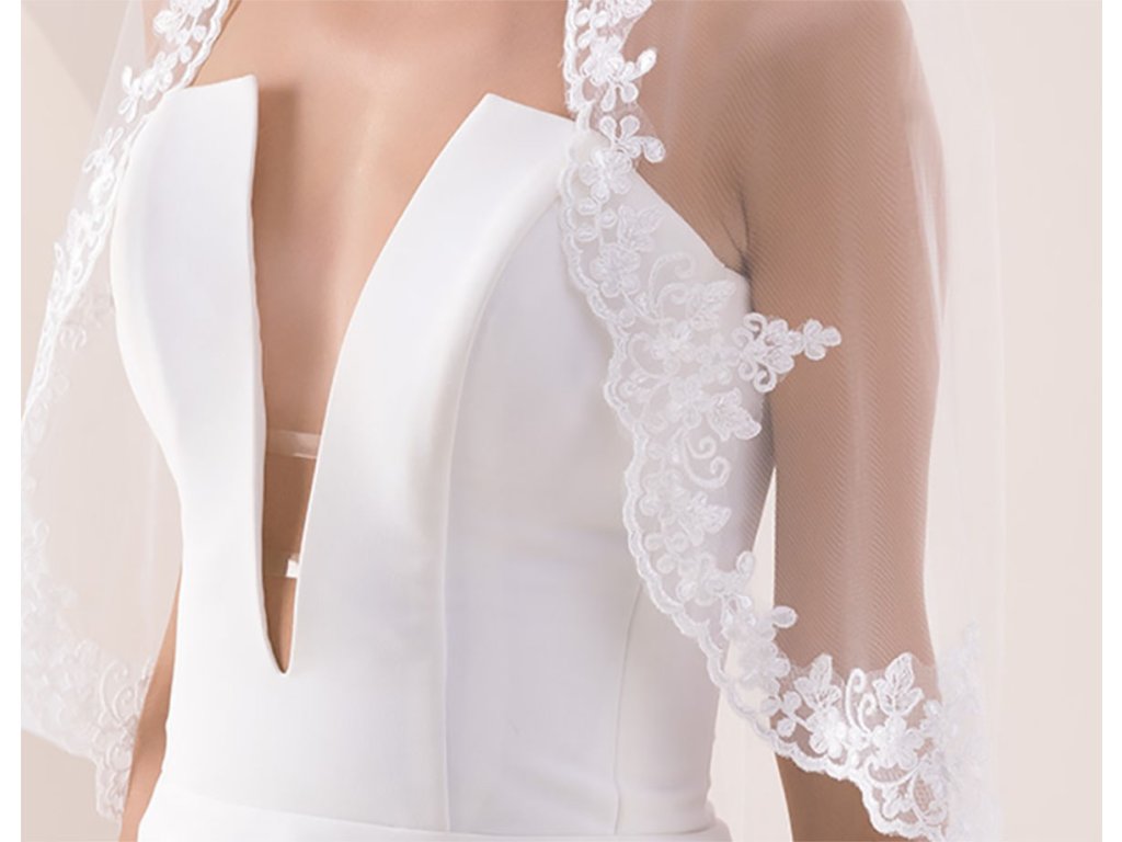 Délka svatebního závoje 80 cm, šířka 150 cm.