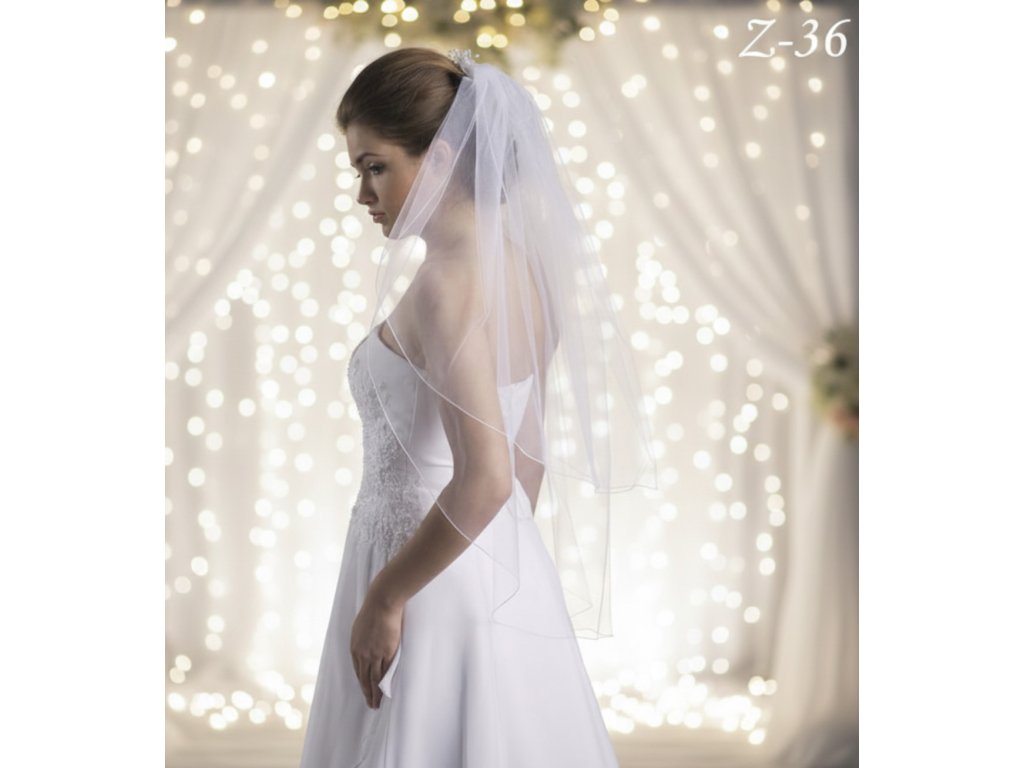Dvouvrstvý svatební závoj s entlovaným lemem.
