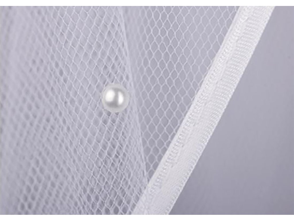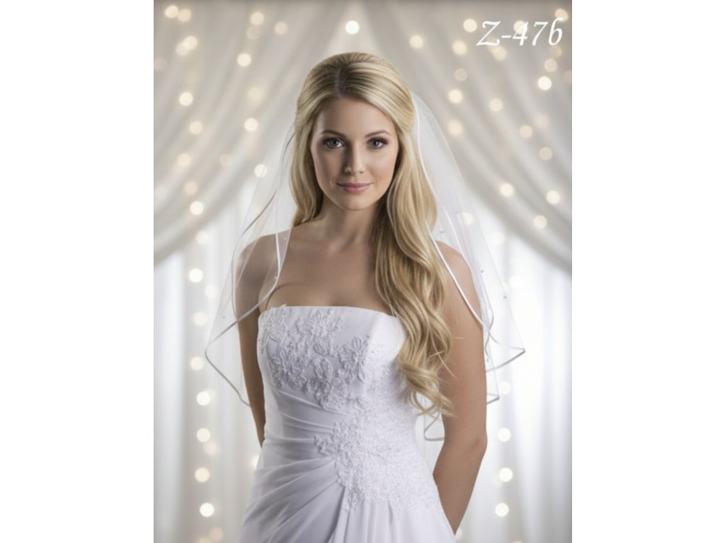 Dvojvrstvý svatební závoj se saténovým lemem, zdobený 30 perlami Swarovski.