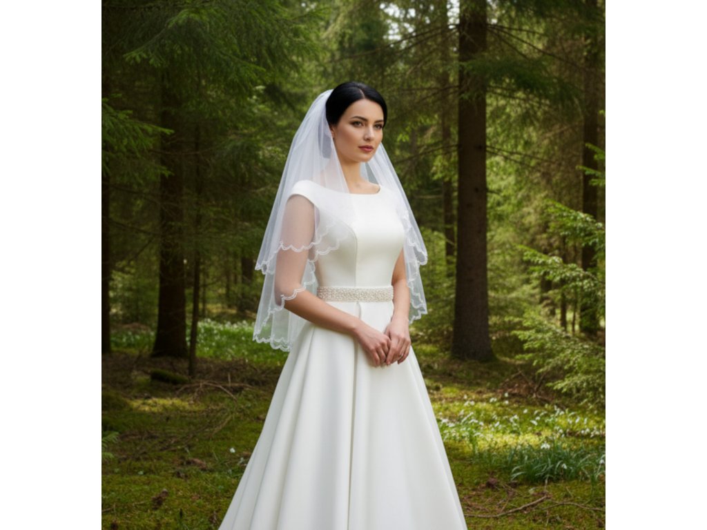 Svatební závoj s dvojitým lemem a kamínky ZS-02