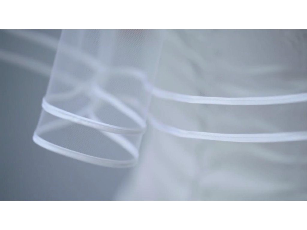 Dvojvrstvý svatební závoj s dvojitým saténovým lemováním.