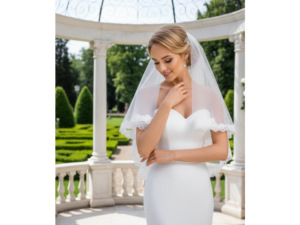 Dvouvrstvý svatební závoj s květinovou krajkou.