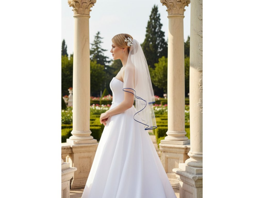 Svatební závoj s modrým lemem ZF-126