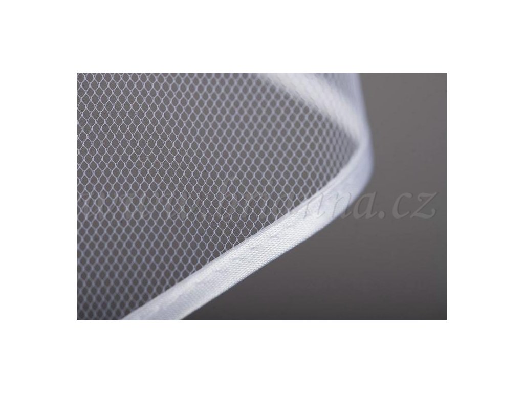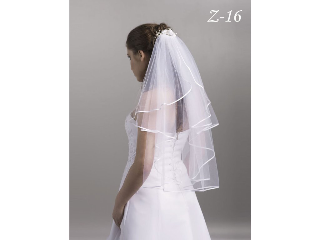 Závoj je připevněný na hřebínku. Ozdoba na hřebínku není součástí závoje.