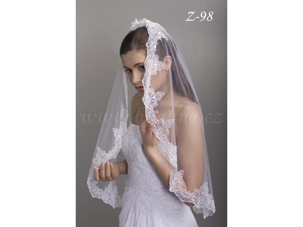 Svatební závoj se španělskou krajkou Z-98 biely