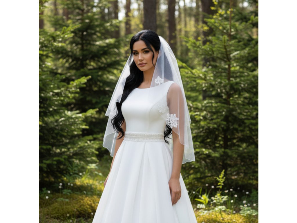 Svatební závoj zdobený krajkovou aplikací s perličkami ZS-01