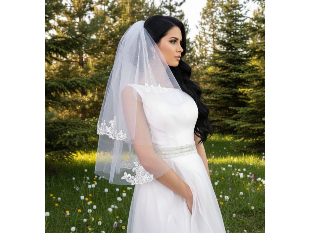 Svatební dvojvrstvý závoj zdobený krajkovou aplikací.
