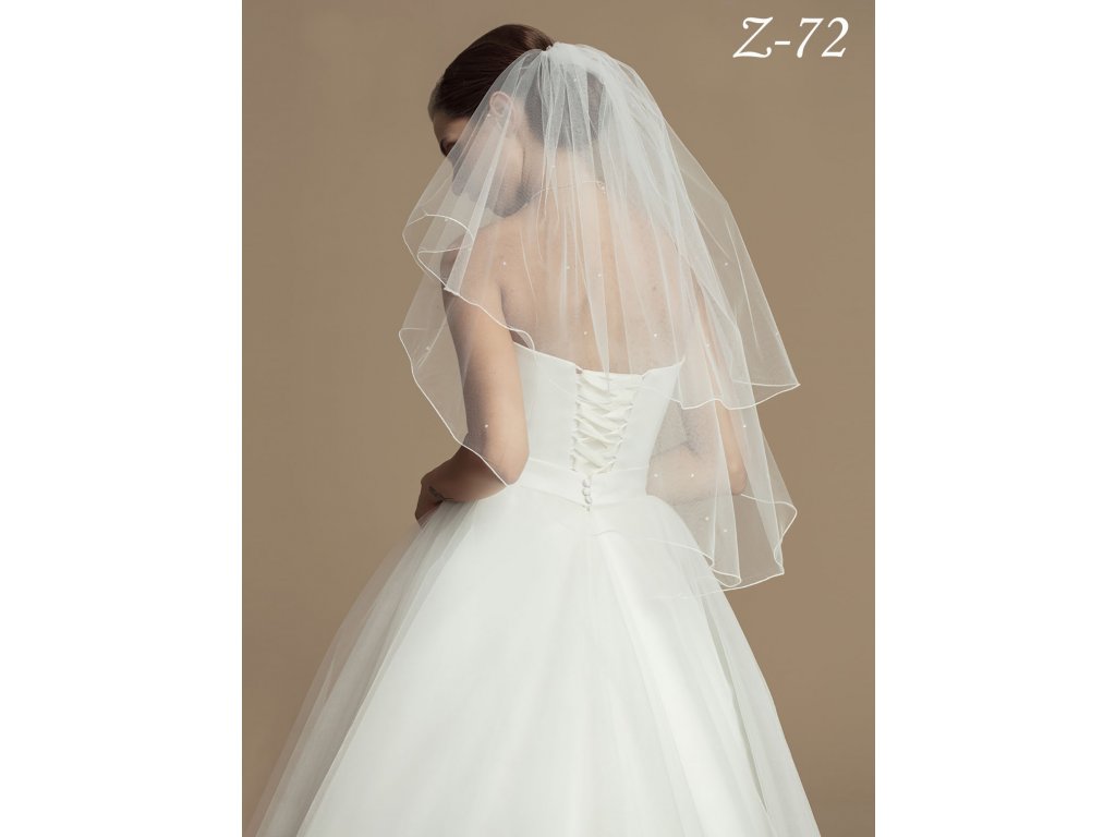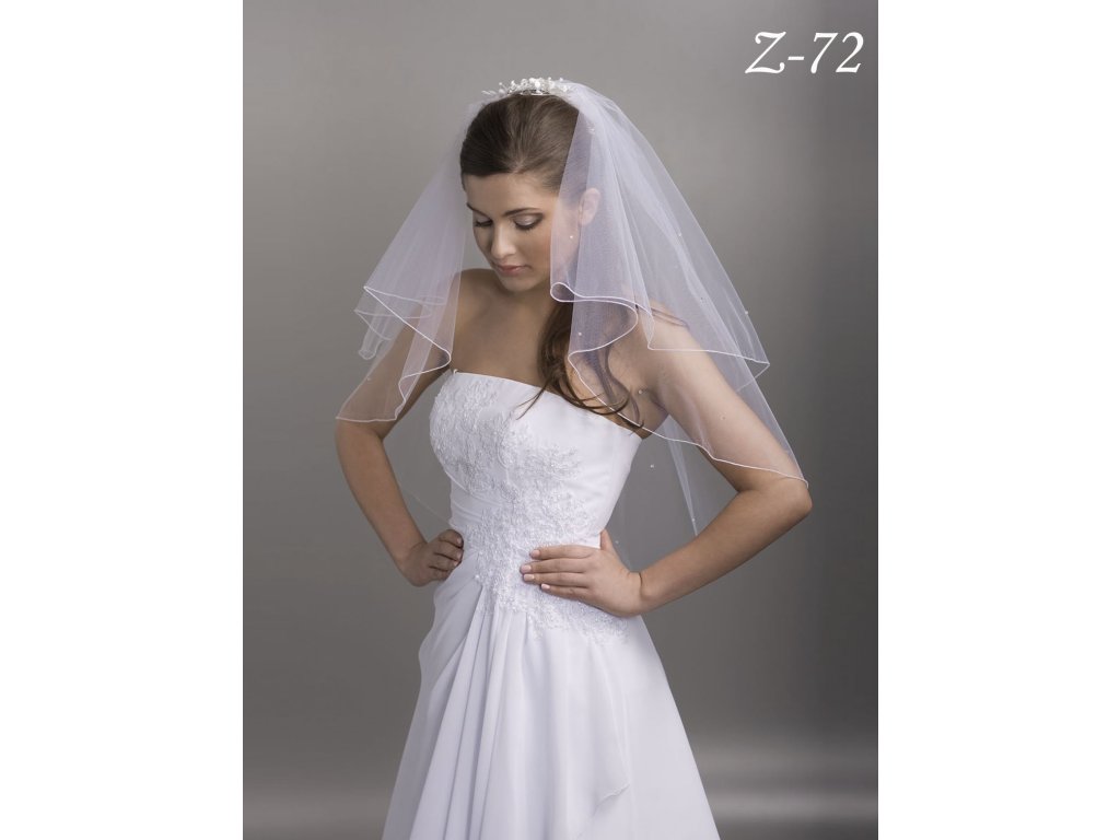 Délka závoje je 60/80 cm, šířka 150 cm.