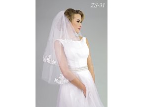 Délka svatebního závoje je 90/80/70 cm, šířka 140 cm.