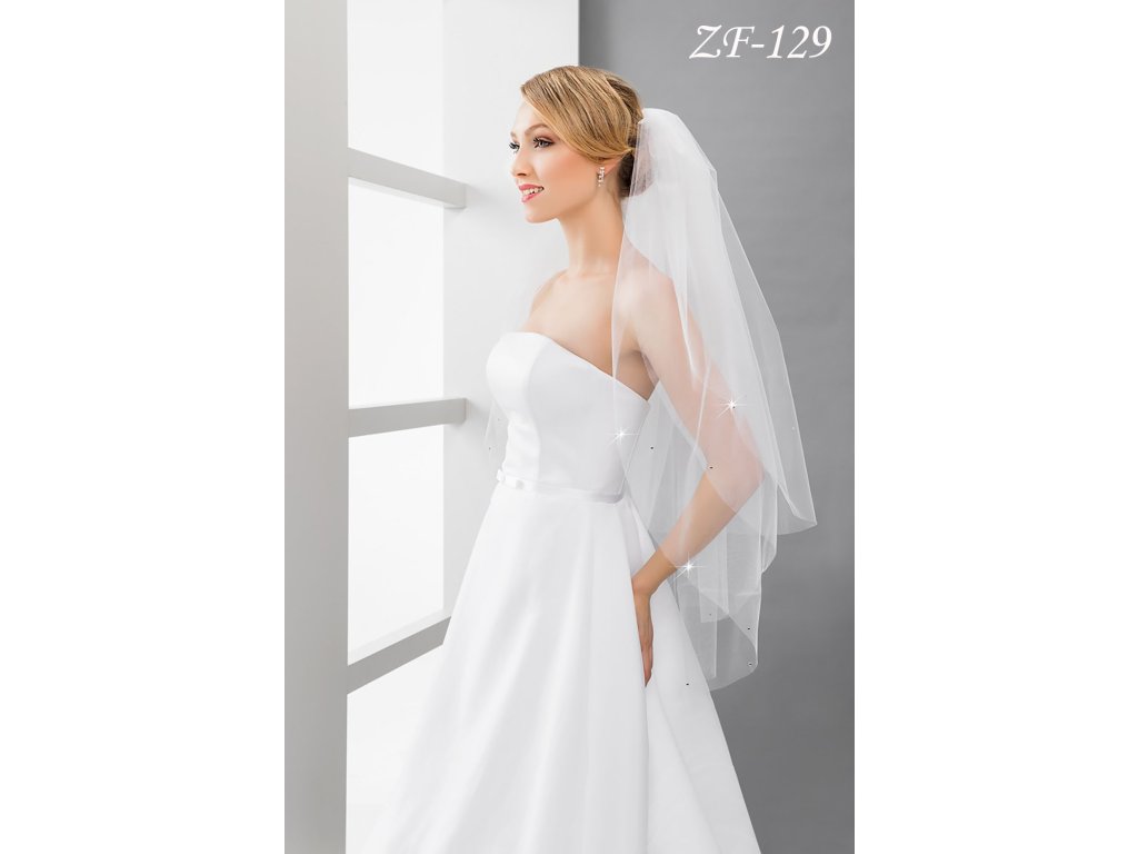 Tylový svatební závoj bez lemu zdobený krystaly ZF-129