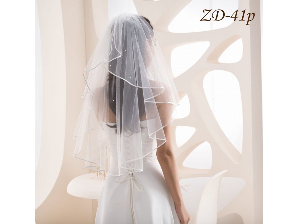 Tylový svatební závoj s perlami a saténovým lemem ZD-41P